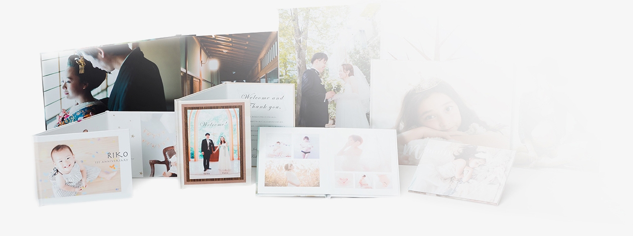 折り畳みのできる台紙です。台紙の表裏、各面に写真をお好みで配置できます。
